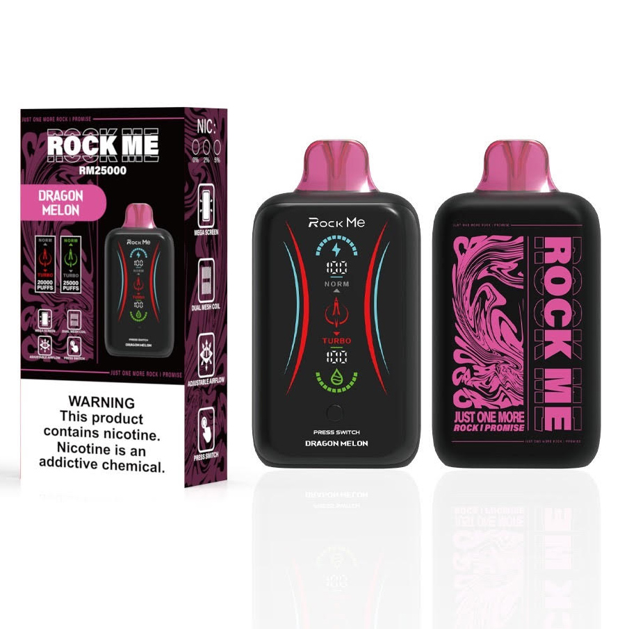 With a whopping 28ML e-liquid capacity and 50MG/ML of nicotine, each hit is packed with satisfaction. And get this – you can enjoy up to 25000 puffs! Switch between Normal Mode and Boost Mode for smooth or strong hits, whatever floats your boat. RockMe 25k has an adjustable airflow to customize your vaping experience