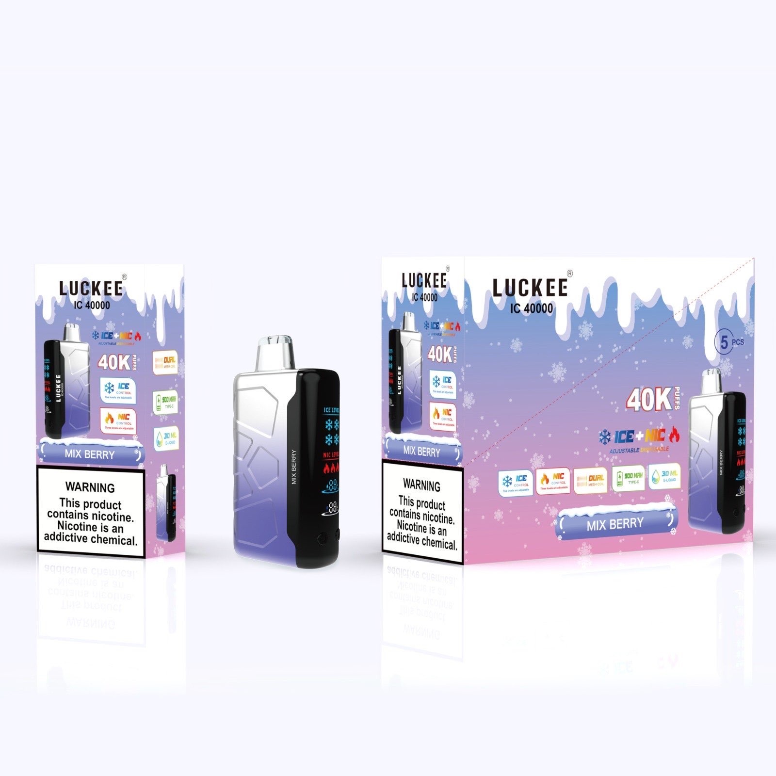 The Luckee IC 40K Mix Berry is perfect for vapers who love rich berry blends with a refreshing coolness—just charge, puff, and enjoy the ride.